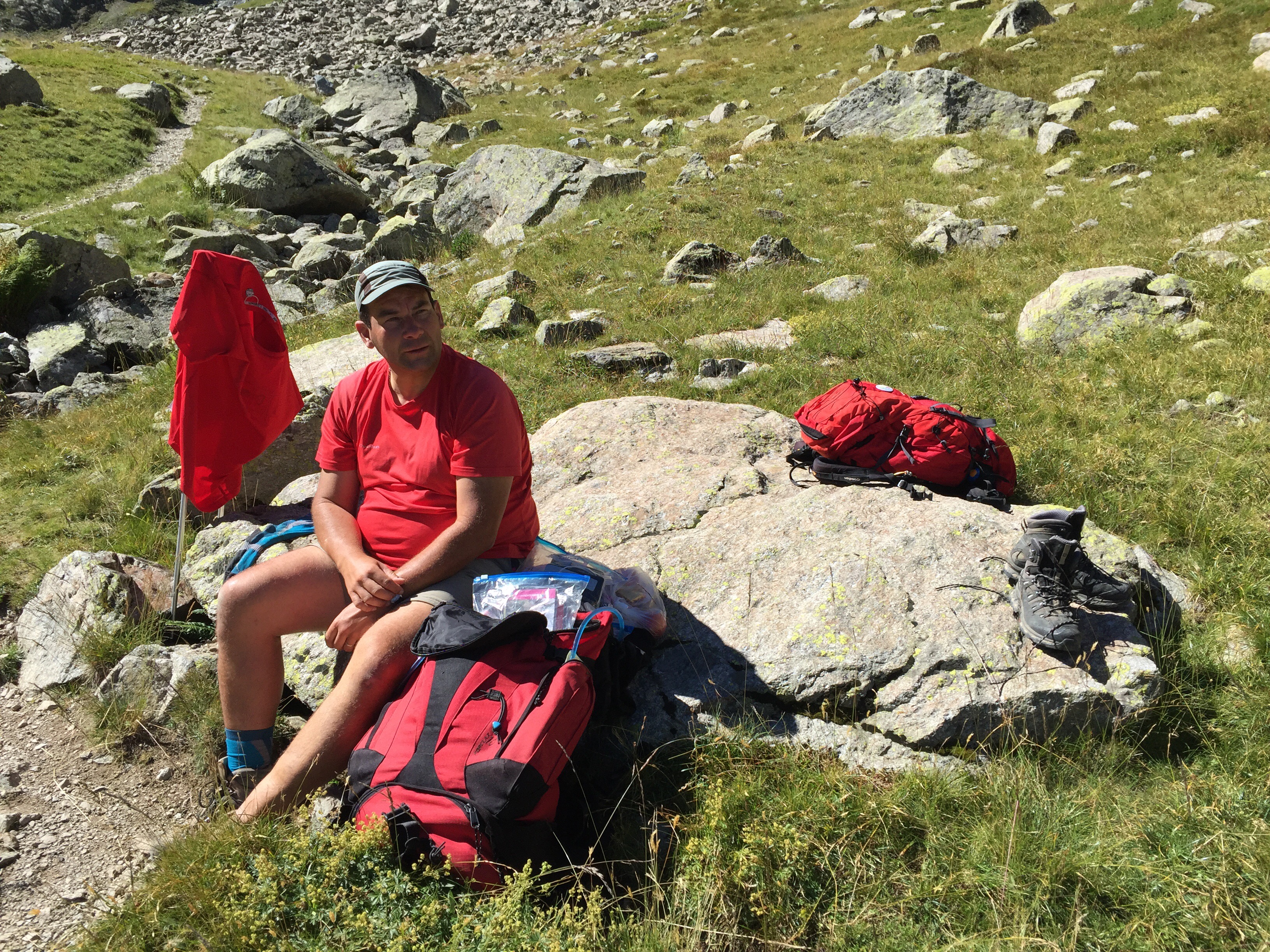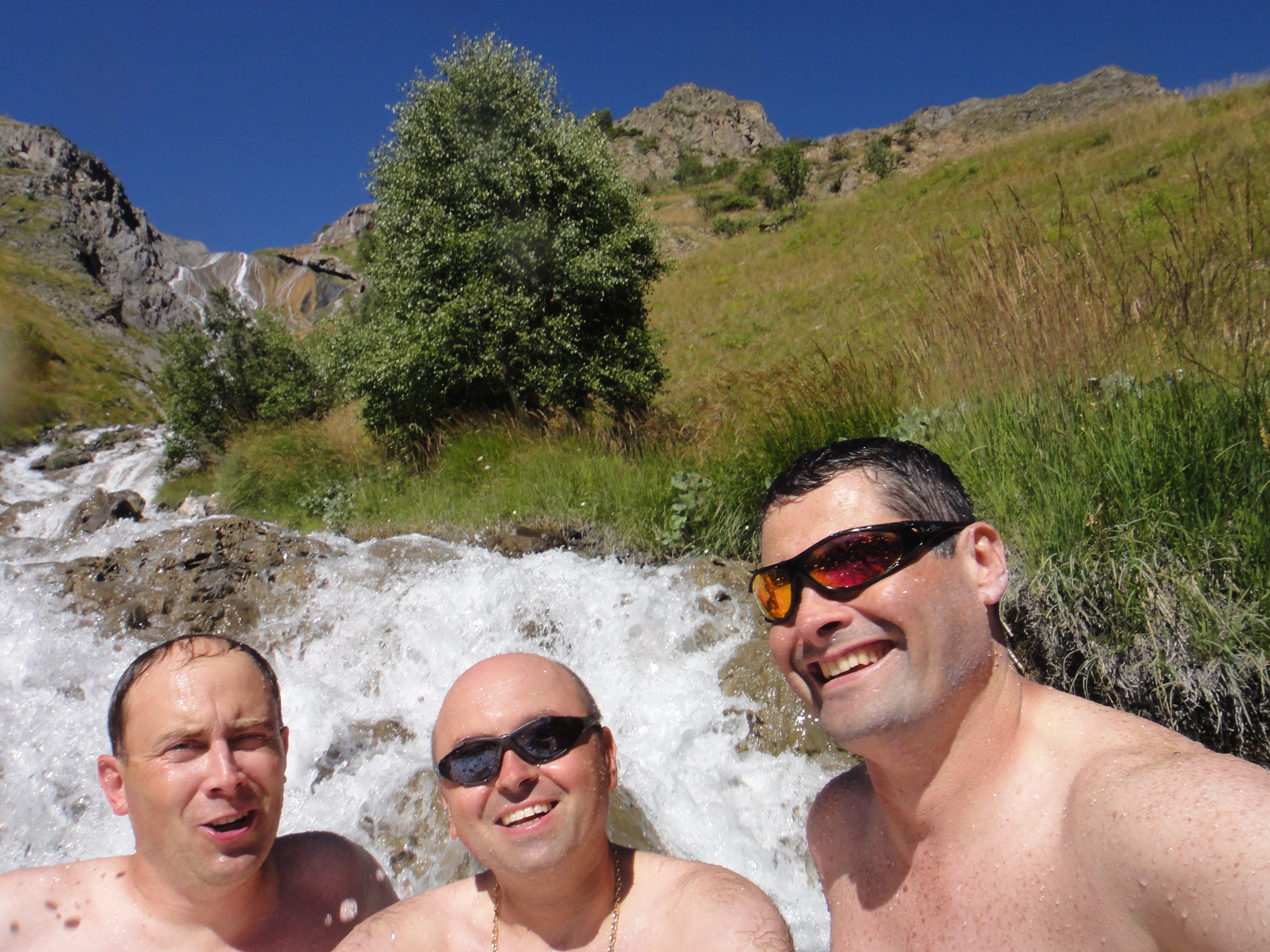 Pour nous rafraîchir, Didier, le gardien du refuge, nous propose un bain rafraîchissant dans le ruisseau à proximité. Il s’agit d’un SPA naturel avec la plus belle vue du monde!!!!
