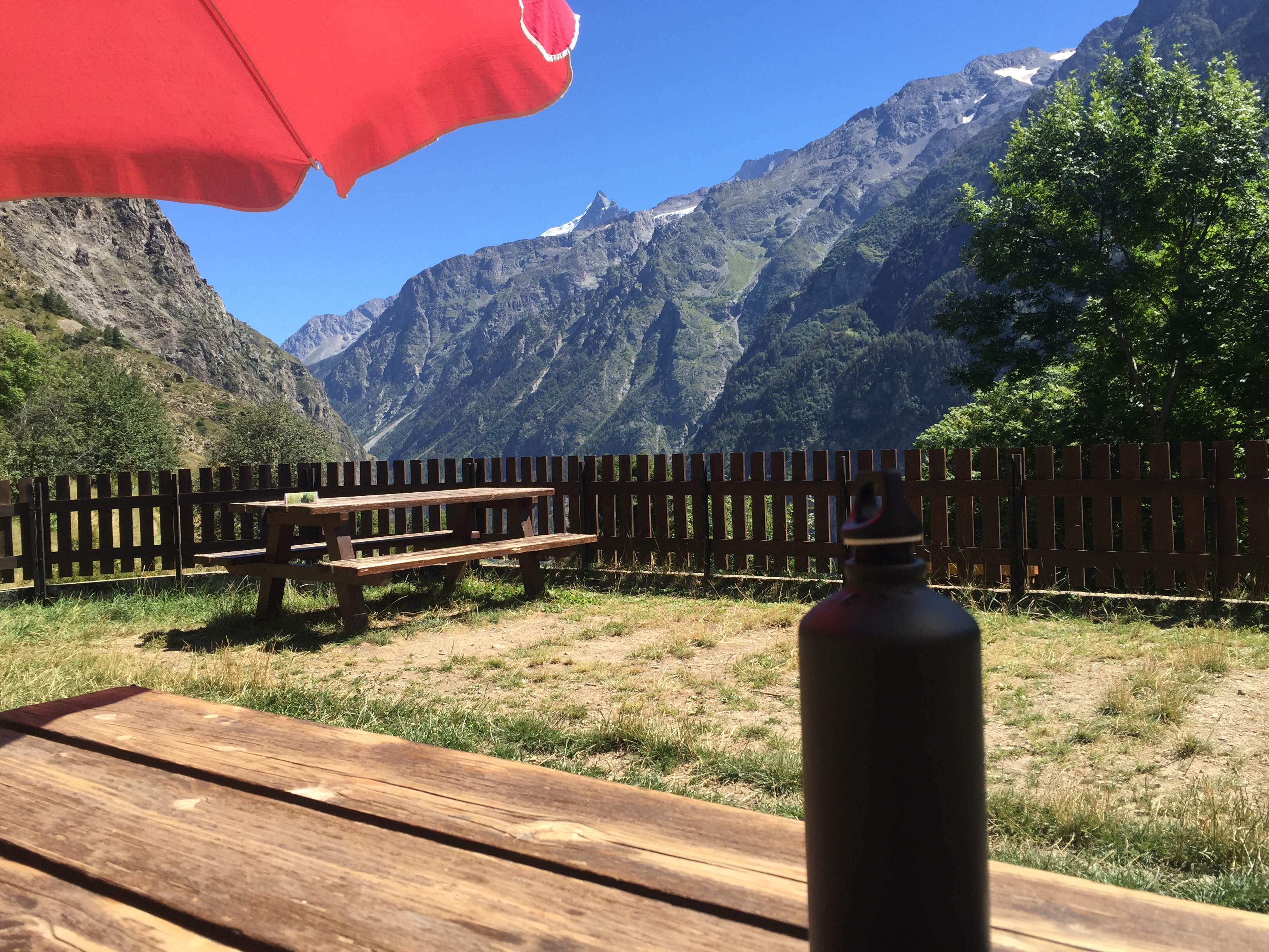 La descente a été très longue avec de nombreux pierriers et passages délicats. Nous avons redescendus les 1800 m de dénivelé négatif en 6h30 avec une petite halte au refuge de la Pierre à Bérard pour savourer un grand verre de diabolo menthe (boisson officielle de nos treks)