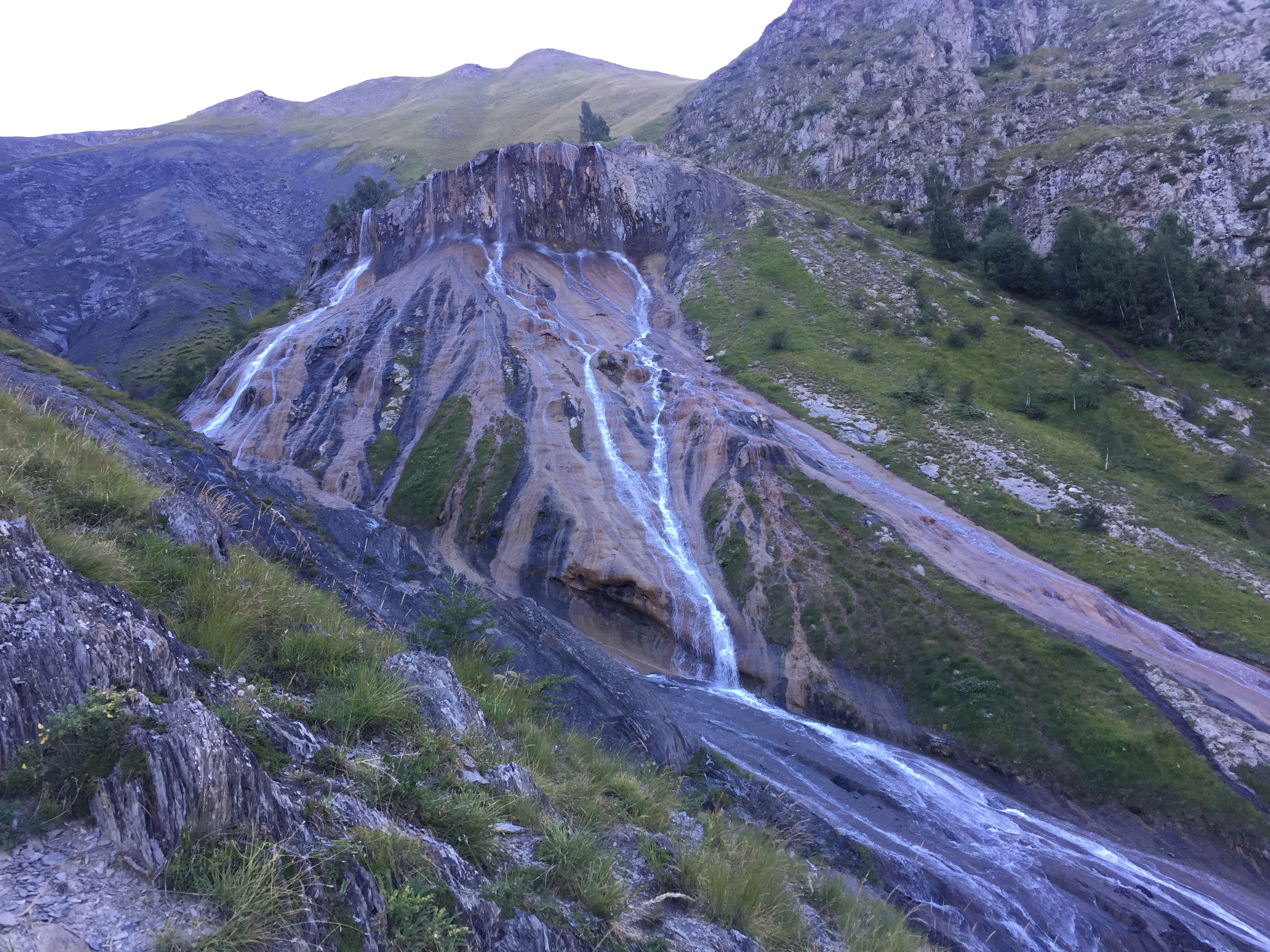 Le sentier était comme d’habitude très pentu! Heureusement que nous étions à l’ombre pour une grande partie de la matinée. Nous sommes passés au-dessus de la fontaine pétrifiante. C’est elle qui laisse ruisseler ses eaux le long des roches, qui alimentent le SPA naturel du jour 7.