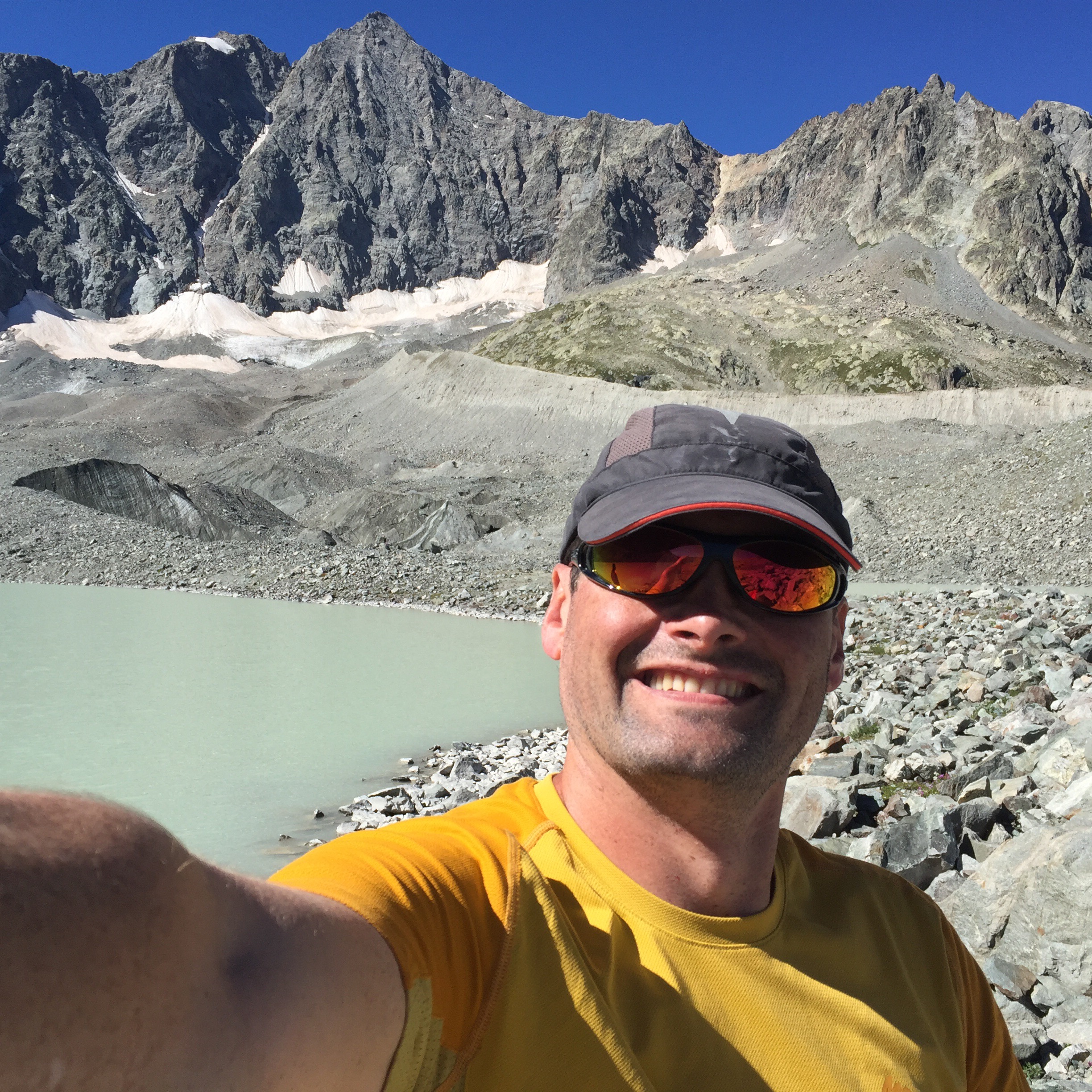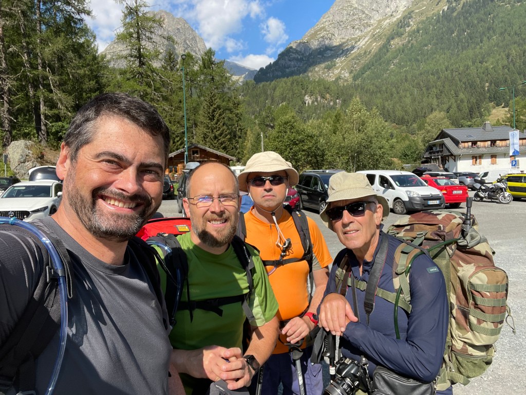 Tandis qu’Olivier attend le retour de Cyril du glacier, Christian prend le chemin du fond de la vallée. Il arrive au parking à 14h00 (où attend Laurent, nommé à la tête de la voiture d’assistance! 😋) en suivant le torrent né dans les entrailles du glacier d’Arsine.