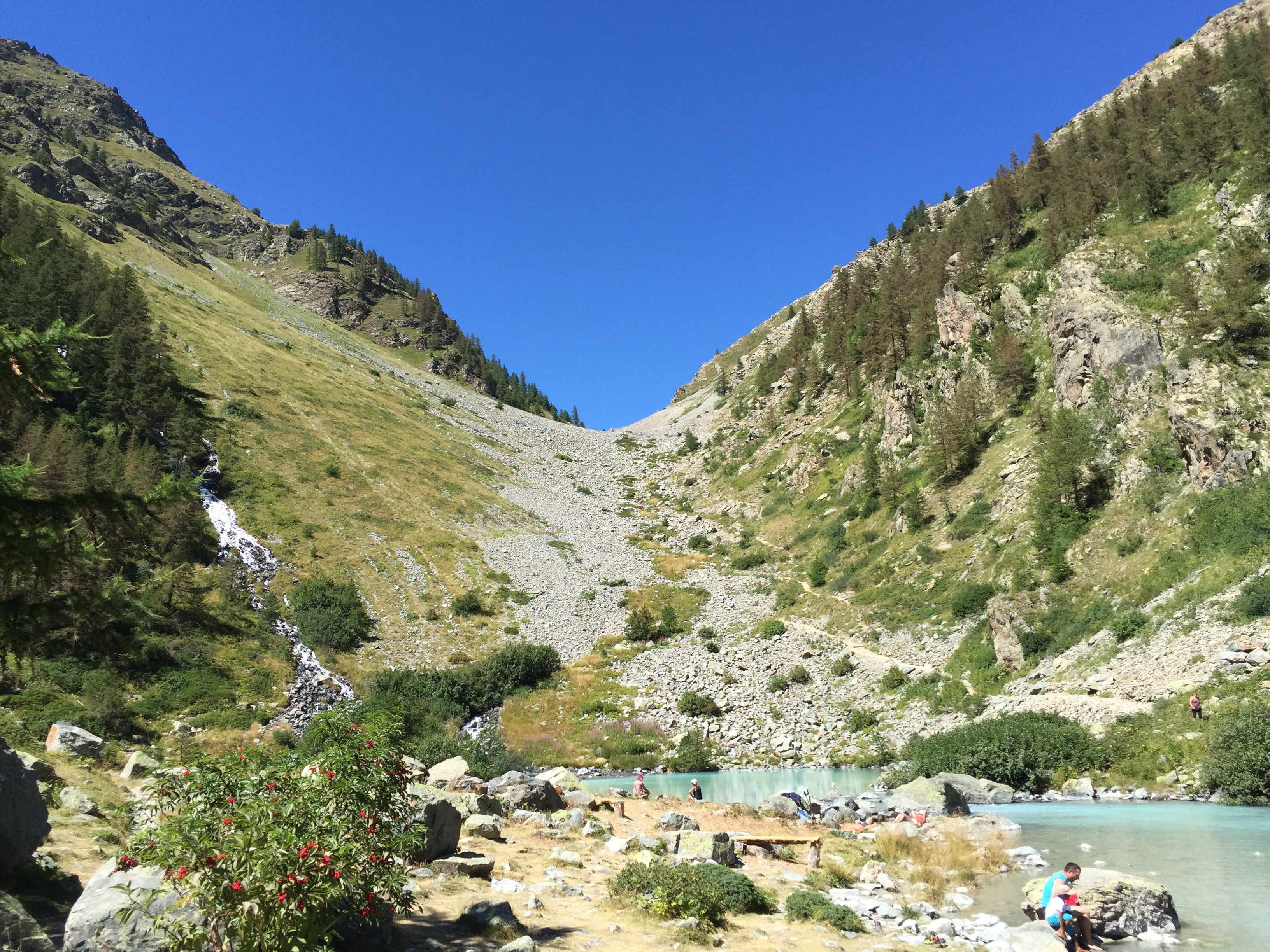 Dans la foulée, nous suivons un sentier menant au lac du glacier d’Arsine (2463 m). Le lac est atteint pour le premier à 10h48.