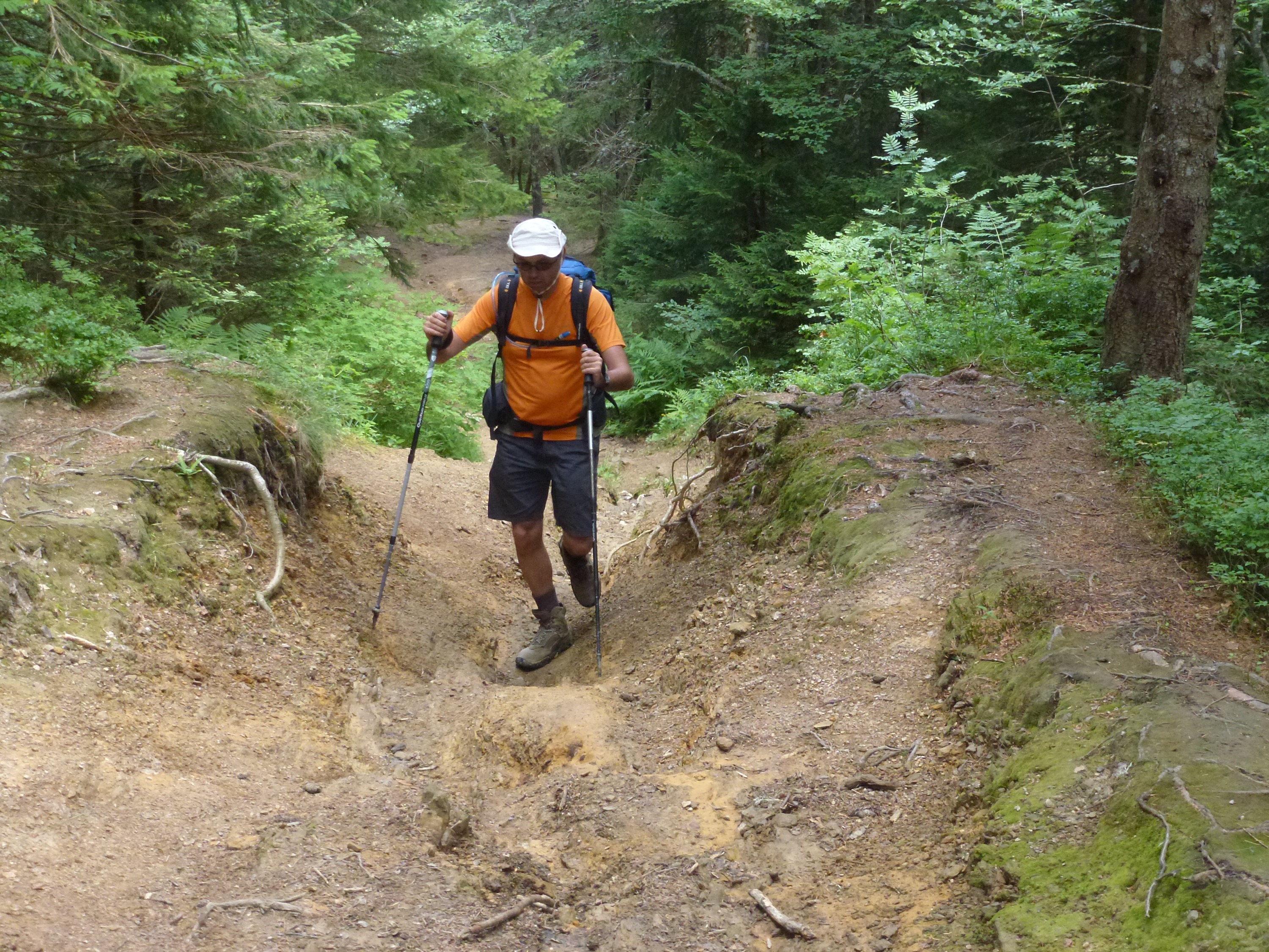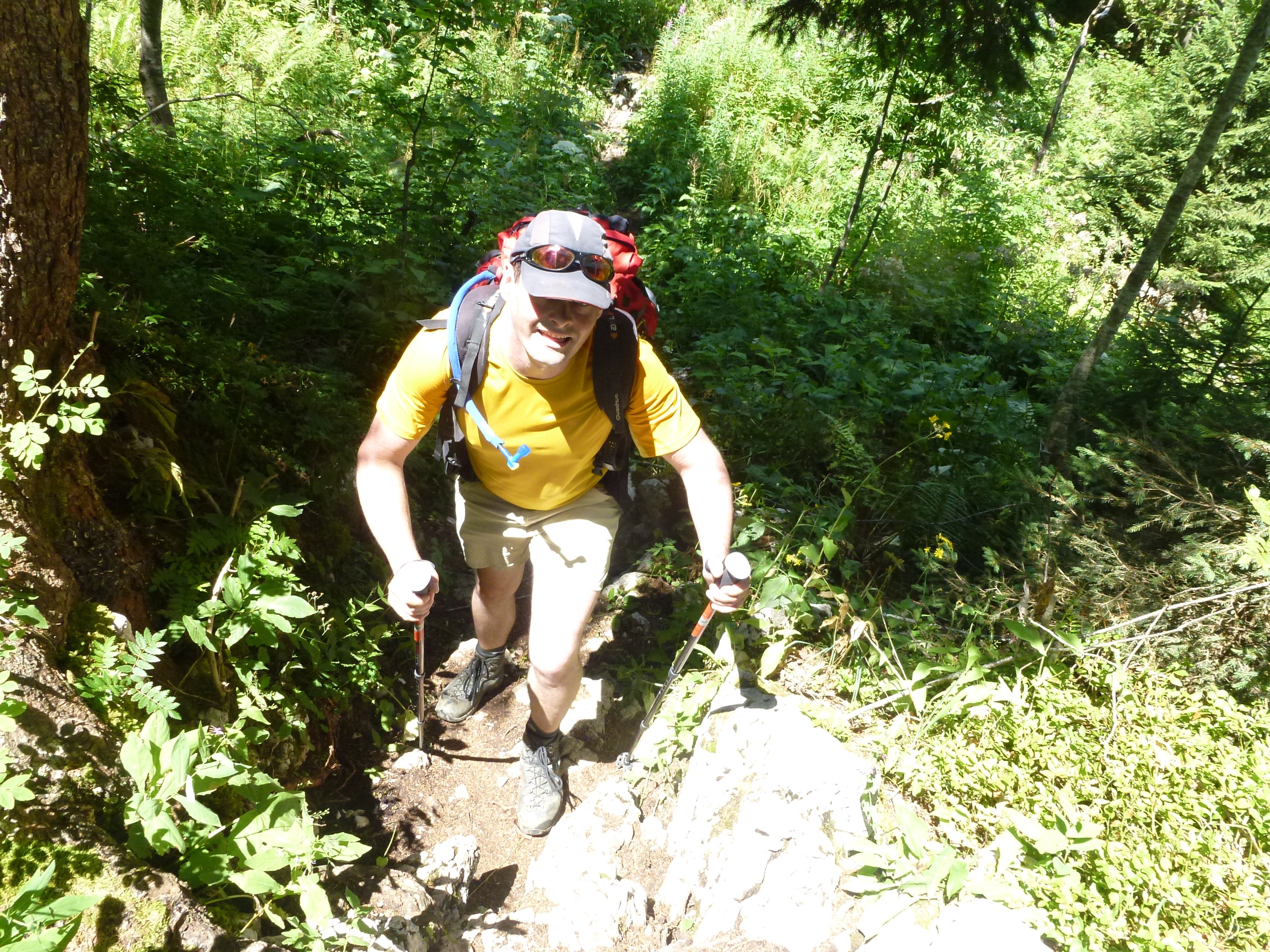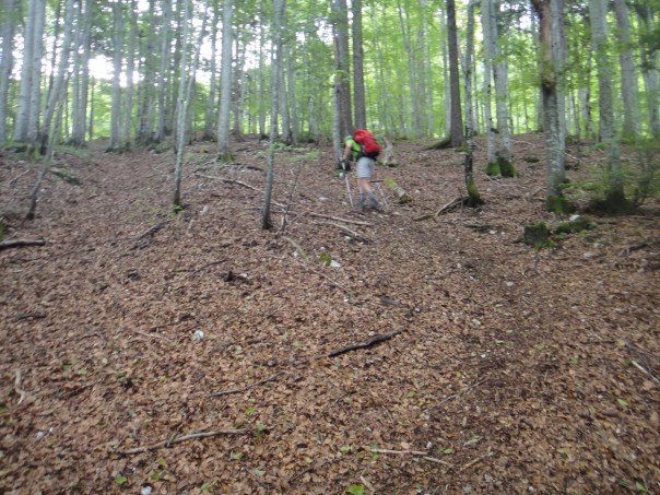 L’ascension a été réalisée assez rapidement malgré la fatigue accumulée au cours de ces derniers jours. Nous avons néanmoins perdu la trace du sentier dans la forêt. Nous avons réussi à retomber sur le bon chemin après une traversée sauvage dans une prairie assez pentue.