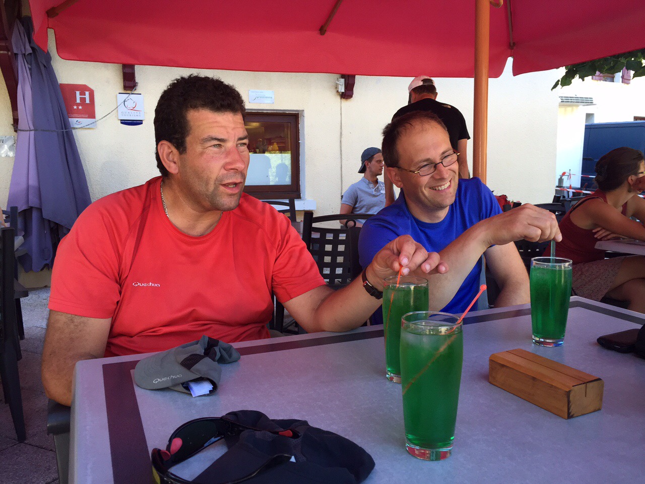 À notre arrivée aux Rousses, Christian et Cyril ont été faire un tour à la pharmacie pour se soigner et limiter les inflammations car ils restent encore quelques journées qui ne seront pas des balades de santé.