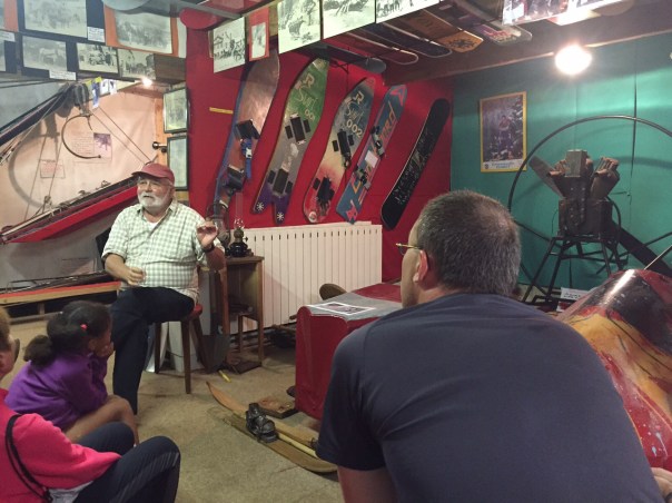 À notre retour de Suisse, petit halte devant notre gîte pour prendre une menthe à l’eau glacée de la fontaine du hameau, puis le diner et enfin la visite du musée privé avec notamment des bobsleighs des années 20 (les tous premiers), les premiers skis fabriqués en France