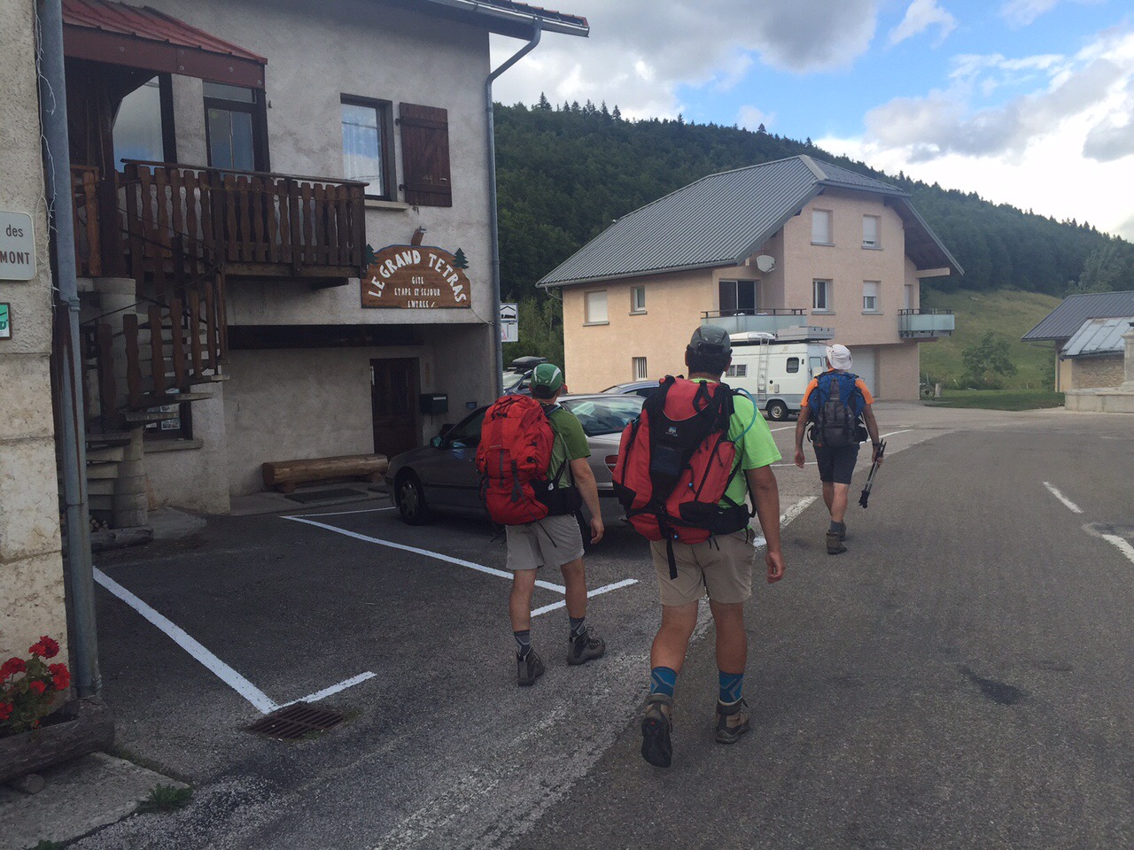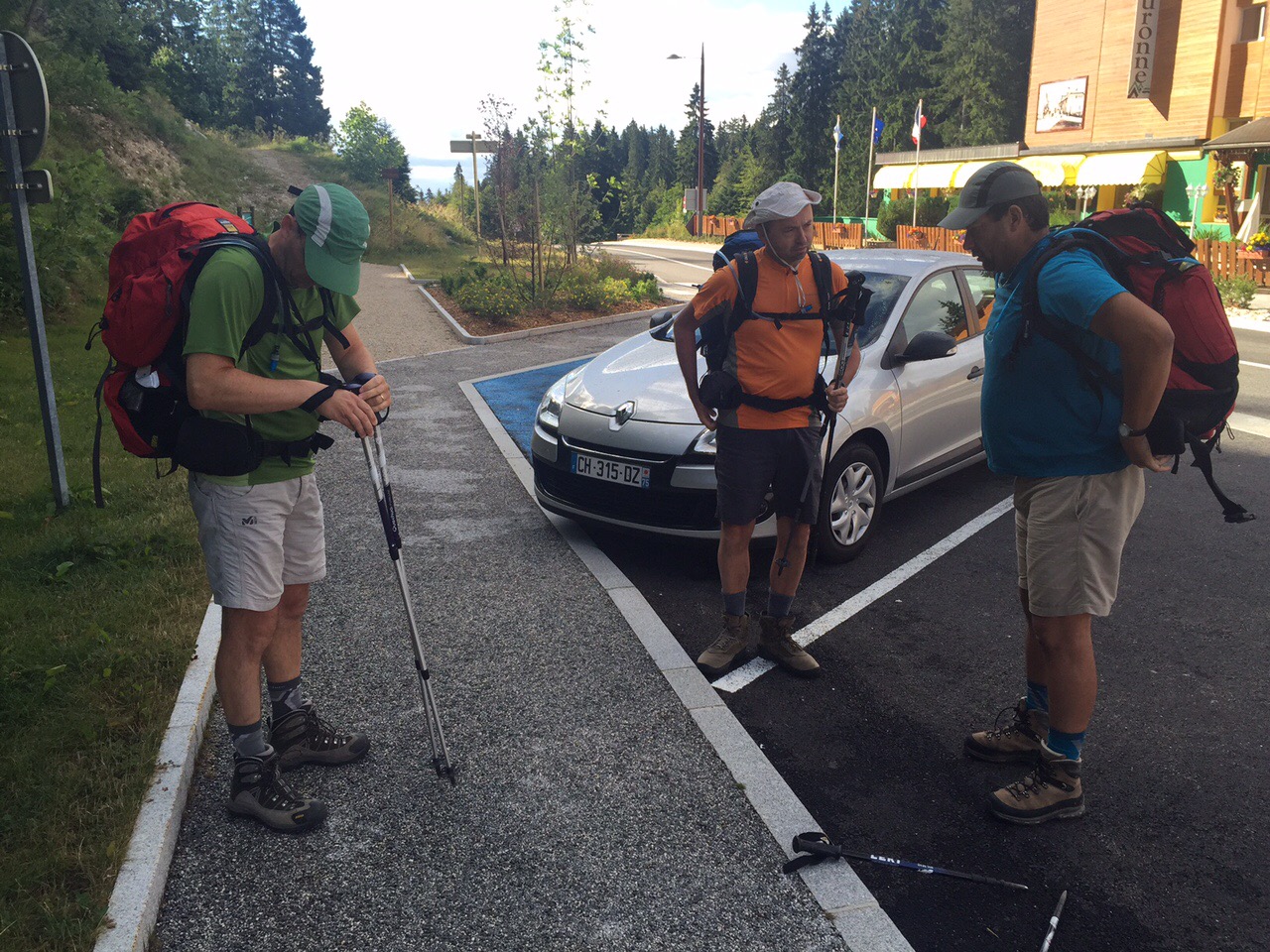 Ce matin, notre réveil a sonné à 7h30 pour un petit déjeuner à 08h00. Il fallait bien récupérer de la veille! De plus, notre hôte du gite de la Michaille nous avait proposé de nous déposer directement en voiture au col de la Faucille (1323 m) afin d’éviter une ascension sans intérêt au bord de la route. Nous avons accepté cette proposition à l’unanimité!!!! 👍🏻