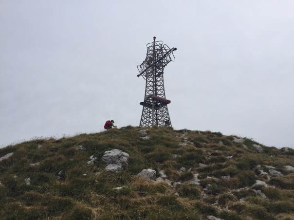 À partir de ce moment, nous avons attaqué un chemin assez pentu jusqu’à la crête du « Chasseron ». De là, nous avons finalisé l’ascension en atteignant le signal géodésique qui est installé sur le sommet à 1607 m. Il s’agit d’un ouvrage en métal représentant un triangle à trois faces (point remarquable des alentours)