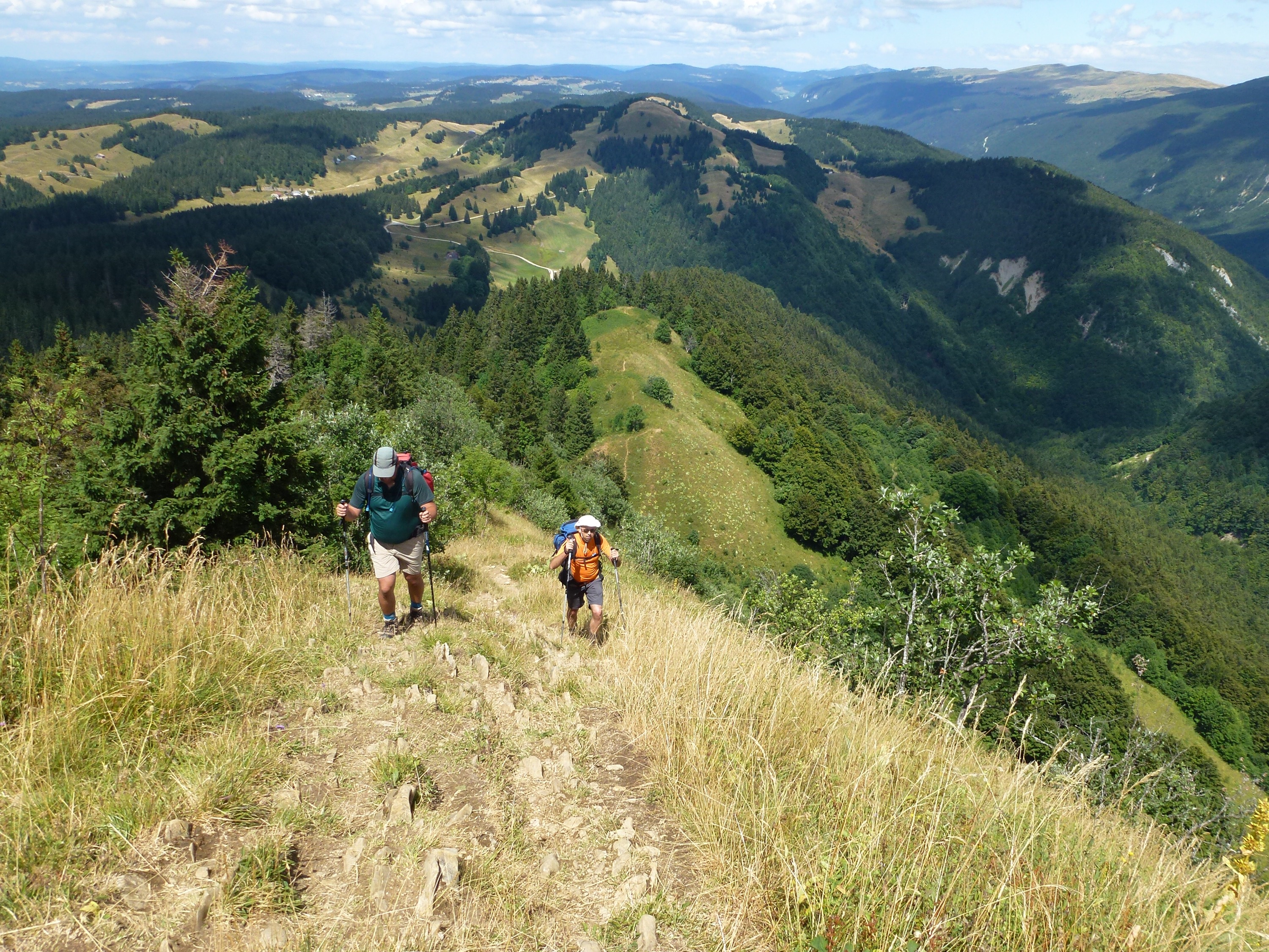 Et là, nous avons découvert une particularité des jurassiens. Ils ne connaissent pas les lacets pour les chemins de randonnées. Non, non! Ici c’est tout droit avec des pentes qui vous font bien mal aux jambes.