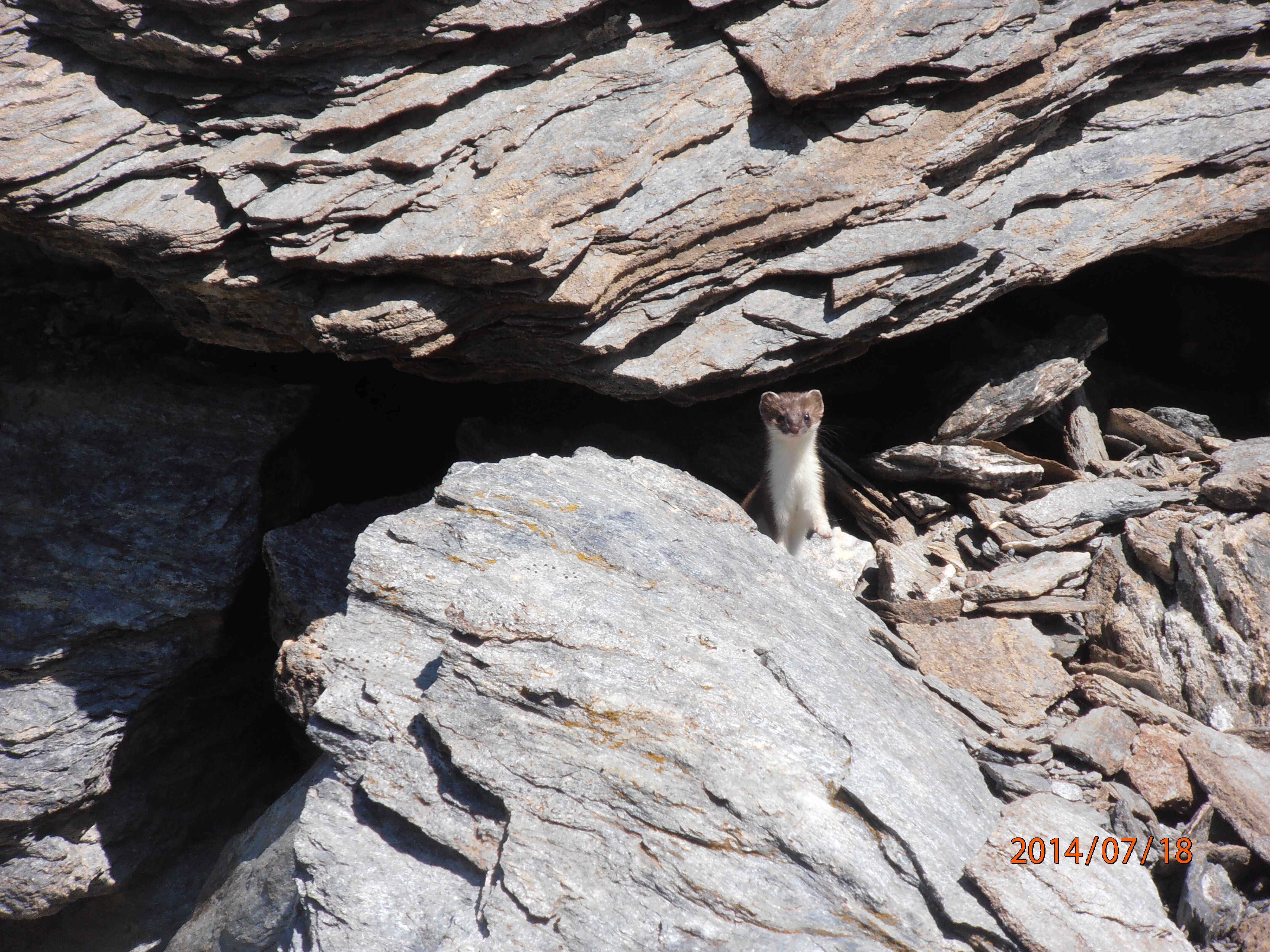 Nous croisons lors de la longue descente un petit groupe de bouquetins (dont deux bébés) puis des petites hermines