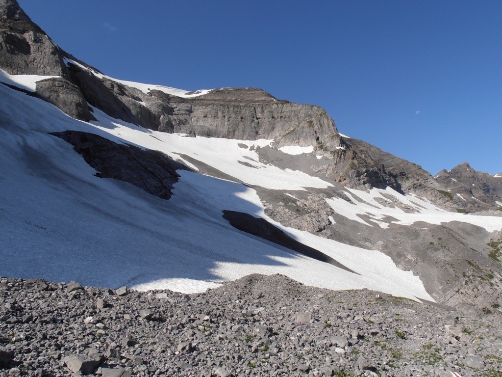 Le départ a été un peu retardé sur les conseils de Fabienne en raison de la glace formée sur les névés.