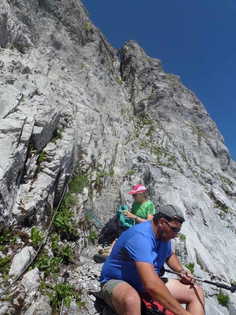 Il s’agit d’une succession de câbles, de marches en fer à béton et d’échelles. La paroi est équipée d’une main courante type « via Ferrata » pour les randonneurs équipés de baudrier! Le petit groupe grimpera sans utiliser cette sécurité… Le groupe attaque la paroi à 11h20