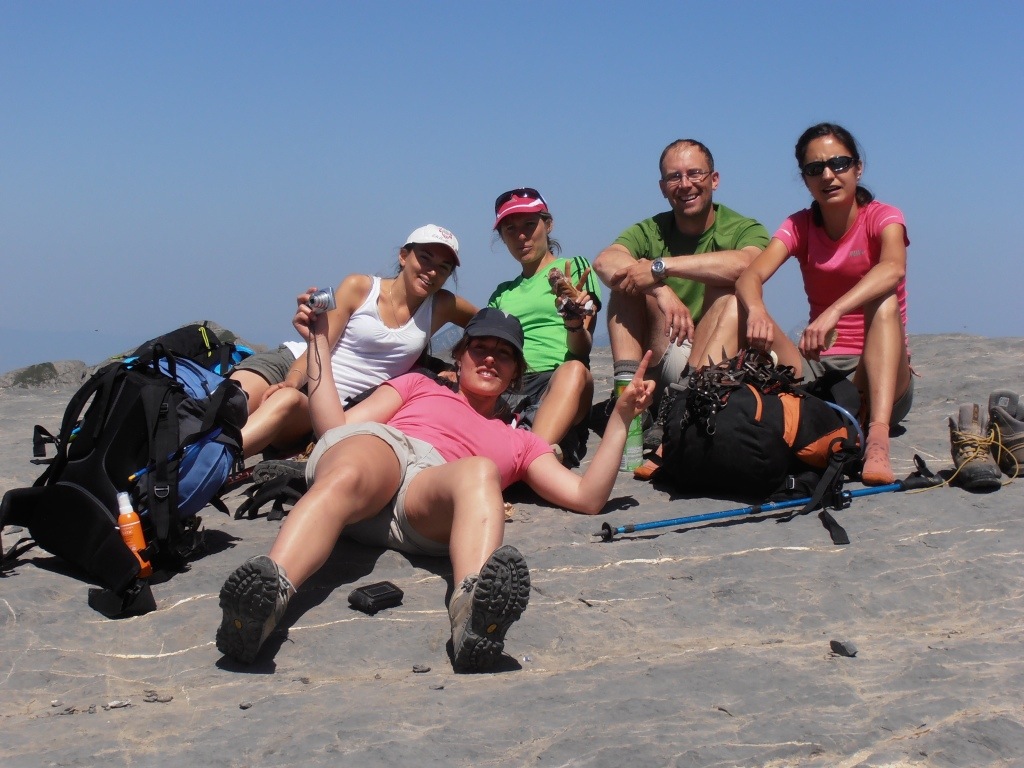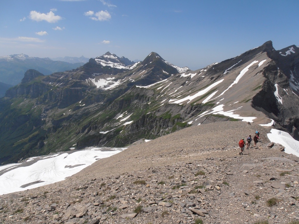 Laurent et Cyril sont sur le sommet au centre de la photo. Encore une heure de marche…..