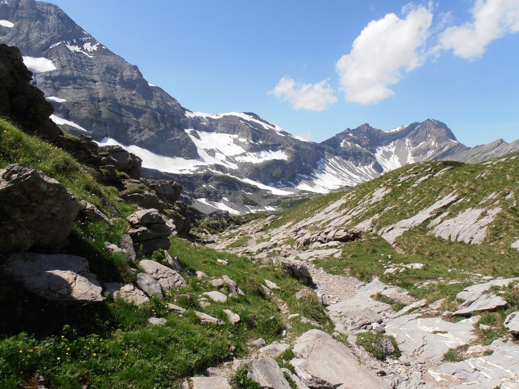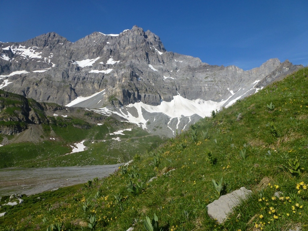 En arrière plan, vous pouvez voir le sommet de la Haute Cime et le col Susanfe.
