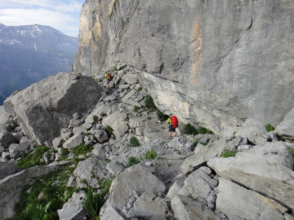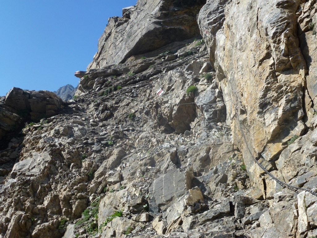 Et nous voilà devant le chemin du pas du bôret. Passage très aérien que Christian a emprunté la veille pour monter au refuge. La descente est encore plus impressionnante. Personne ayant le vertige s’abstenir!!!!! La descente ne dure que 30 minutes