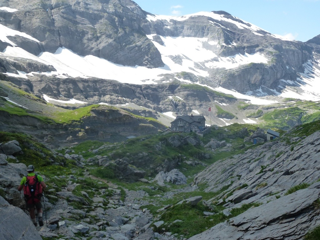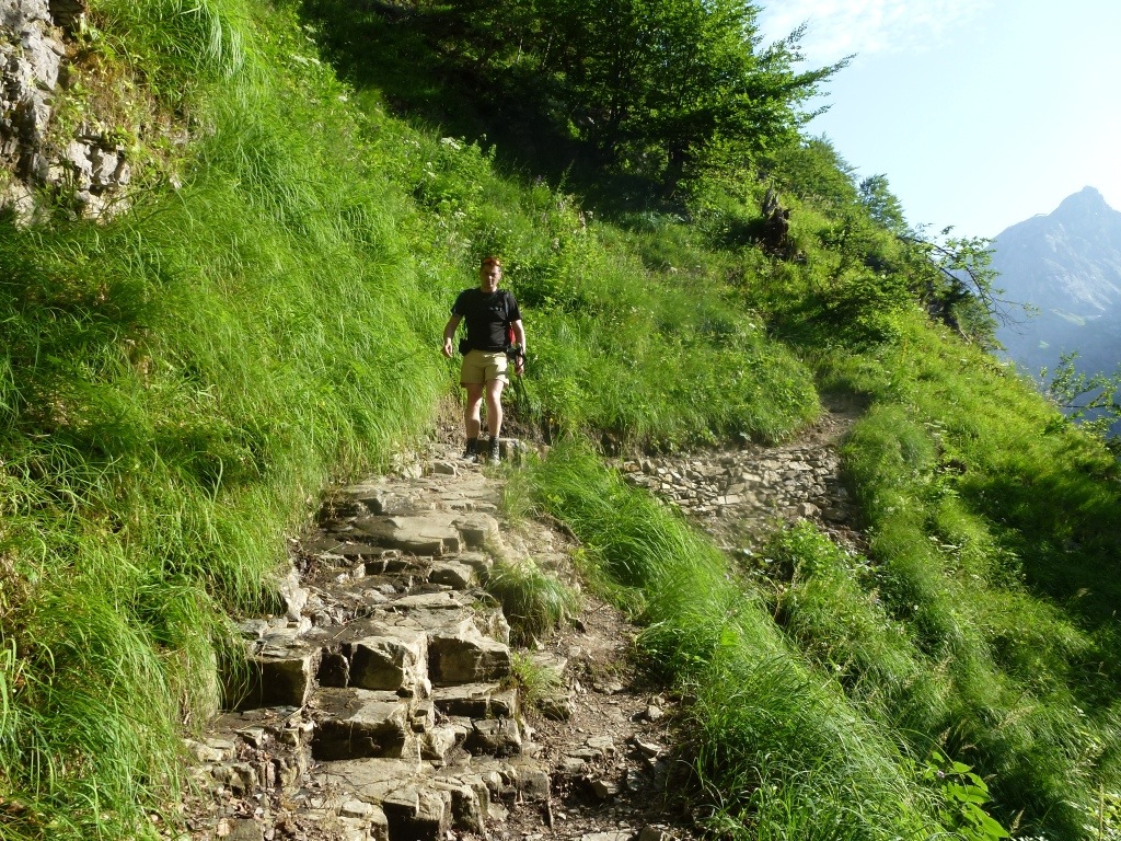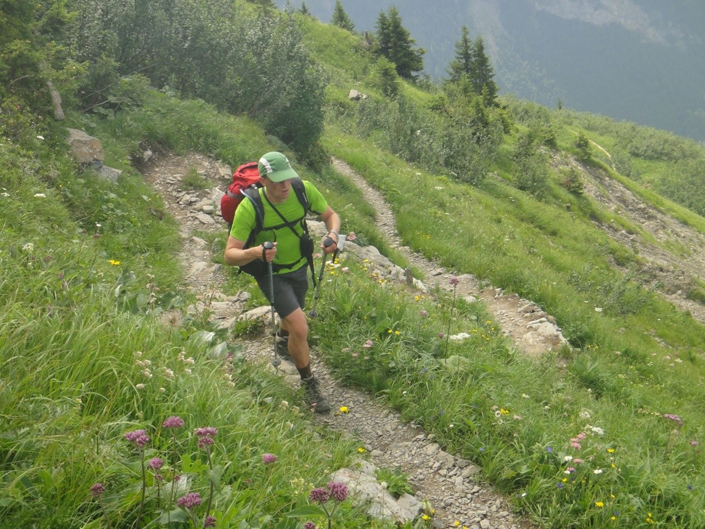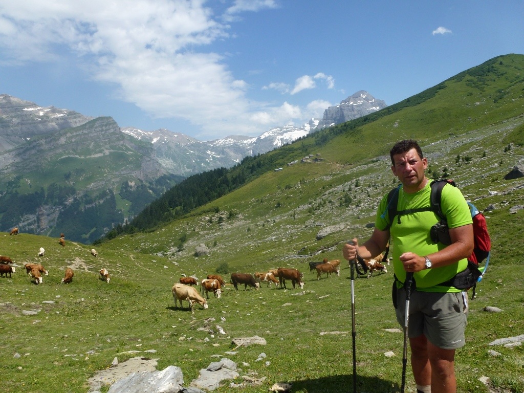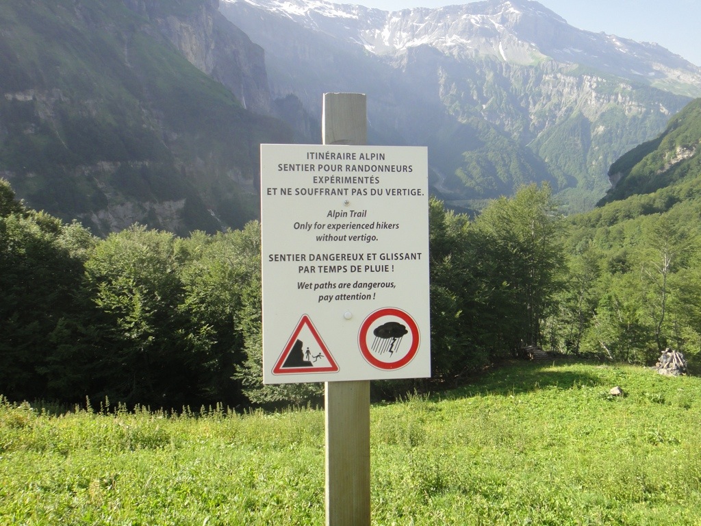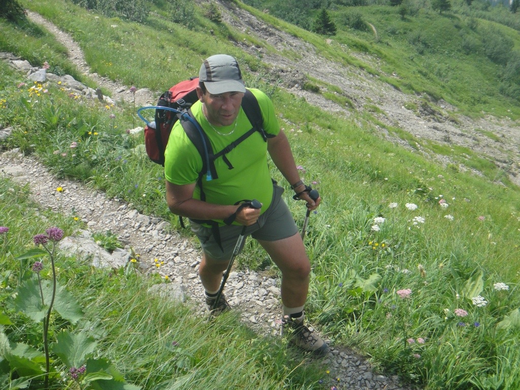 Pendant ce temps, à 10h00, Christian, qui a reposé sa jambe pendant une journée, arrive à Sixt-Fer à Cheval pour se rendre au refuge de la Vogealle (950 m de dénivelé positif) par le pas du Borêt. C’est un passage très pentu, déconseillé aux personnes souffrant de vertige et en cas de pluie.