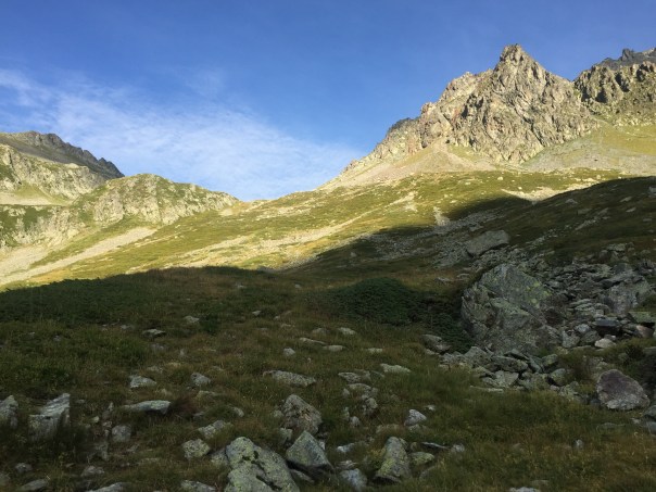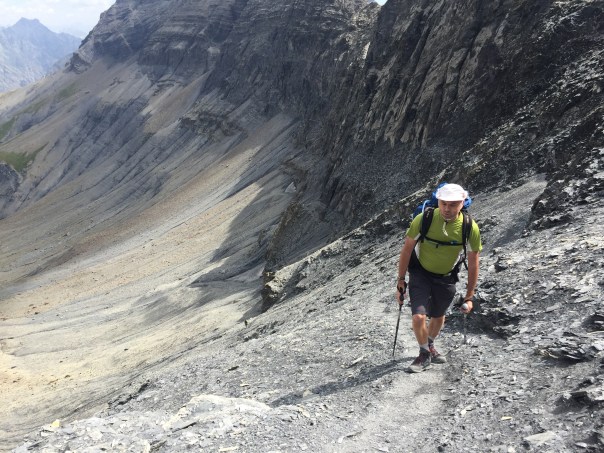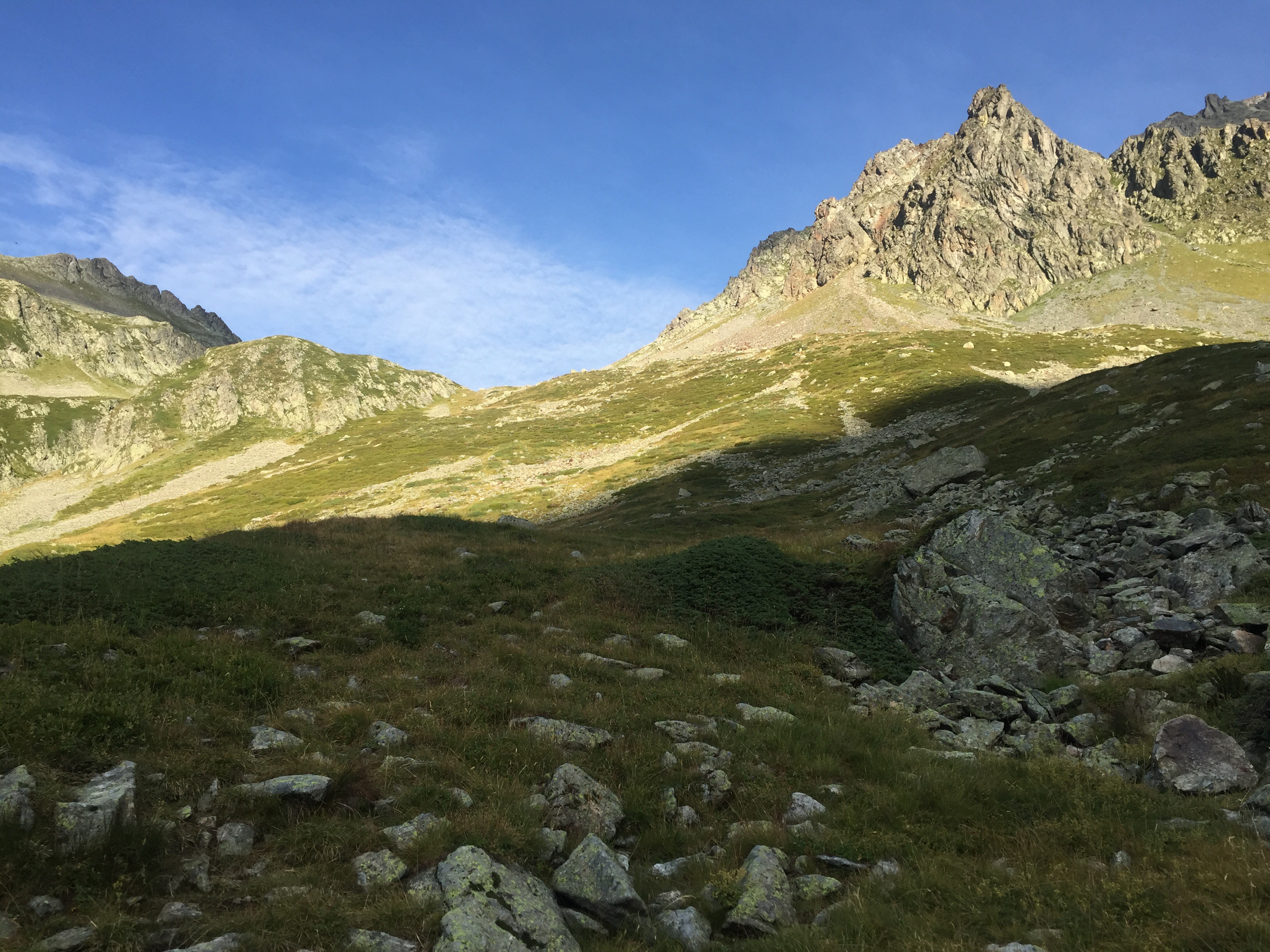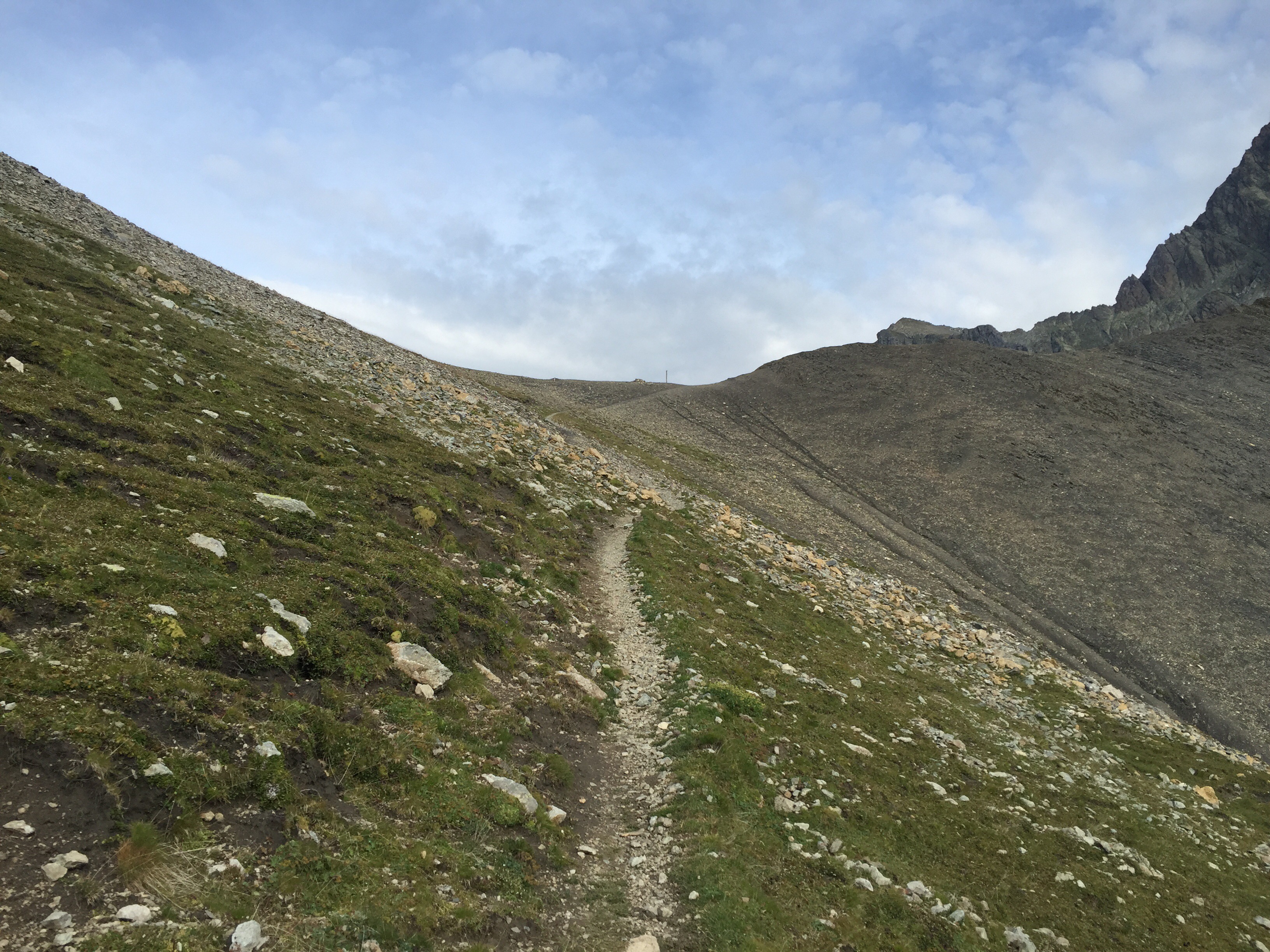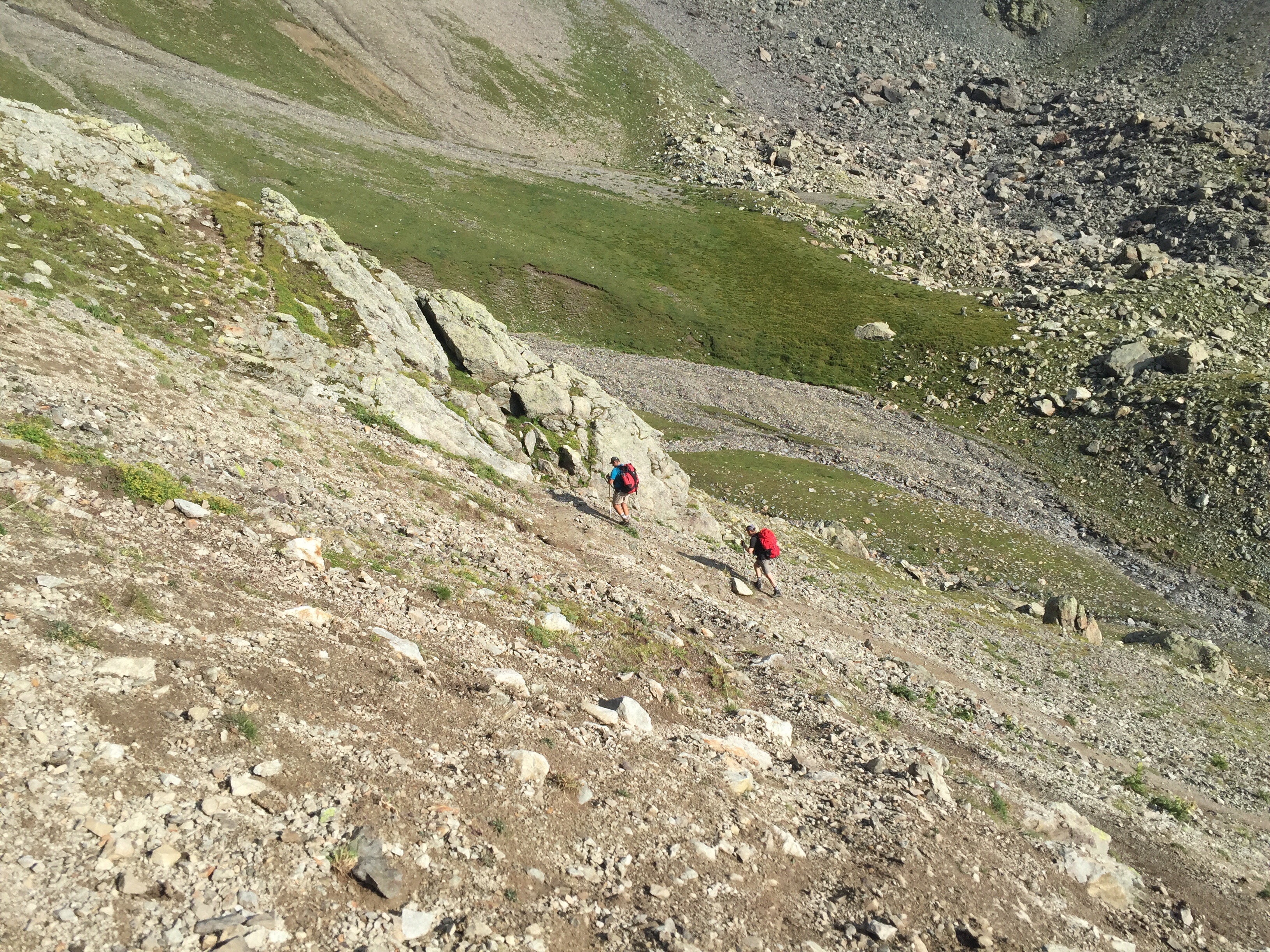 La première descente a été avalée rapidement. Elle était composée de schiste et d’éboulis. Nous avons ensuite longé un cirque avant d’attaquer le second col : le col de Colombe (2423 m).