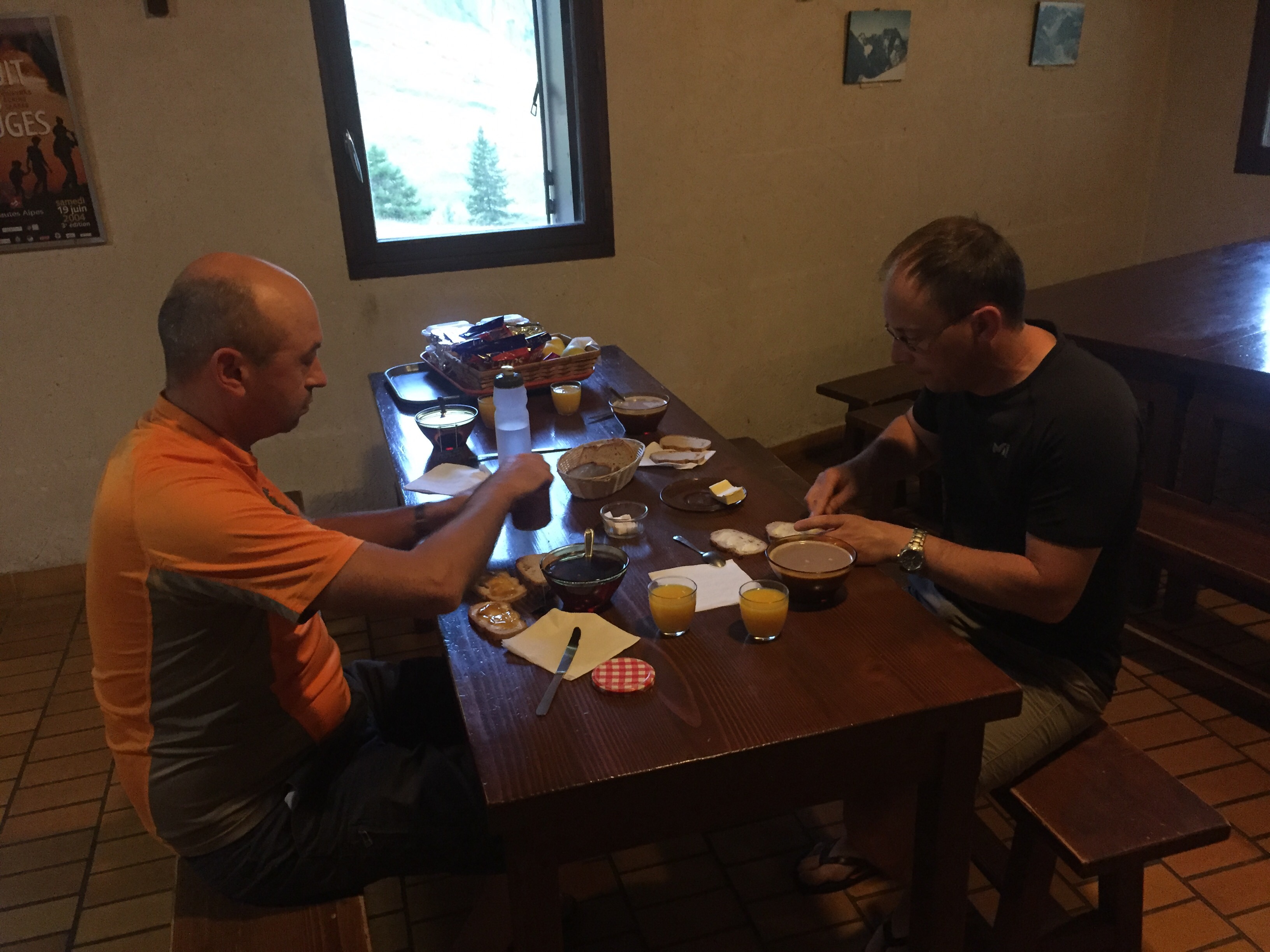 Cette journée a commencé par un réveil à 06h30 et un petit déjeuner vers 06h45 avant de quitter le refuge de Vallonpierre (2271 m) à 07h40.