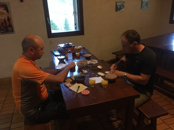 Ce soir, nous ne sommes que trois dans le gîte. Nous retrouvons un randonneur breton que nous avions croisé lors de notre arrêt pique-nique au refuge de Souffles (avant hier).