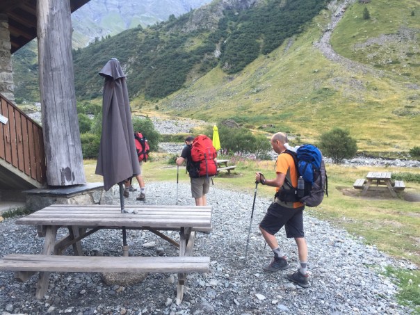 Cette descente nous a amené directement au refuge des Souffles (1968 m). Nous en avons profité pour nous mettre au sec pour déjeuner.