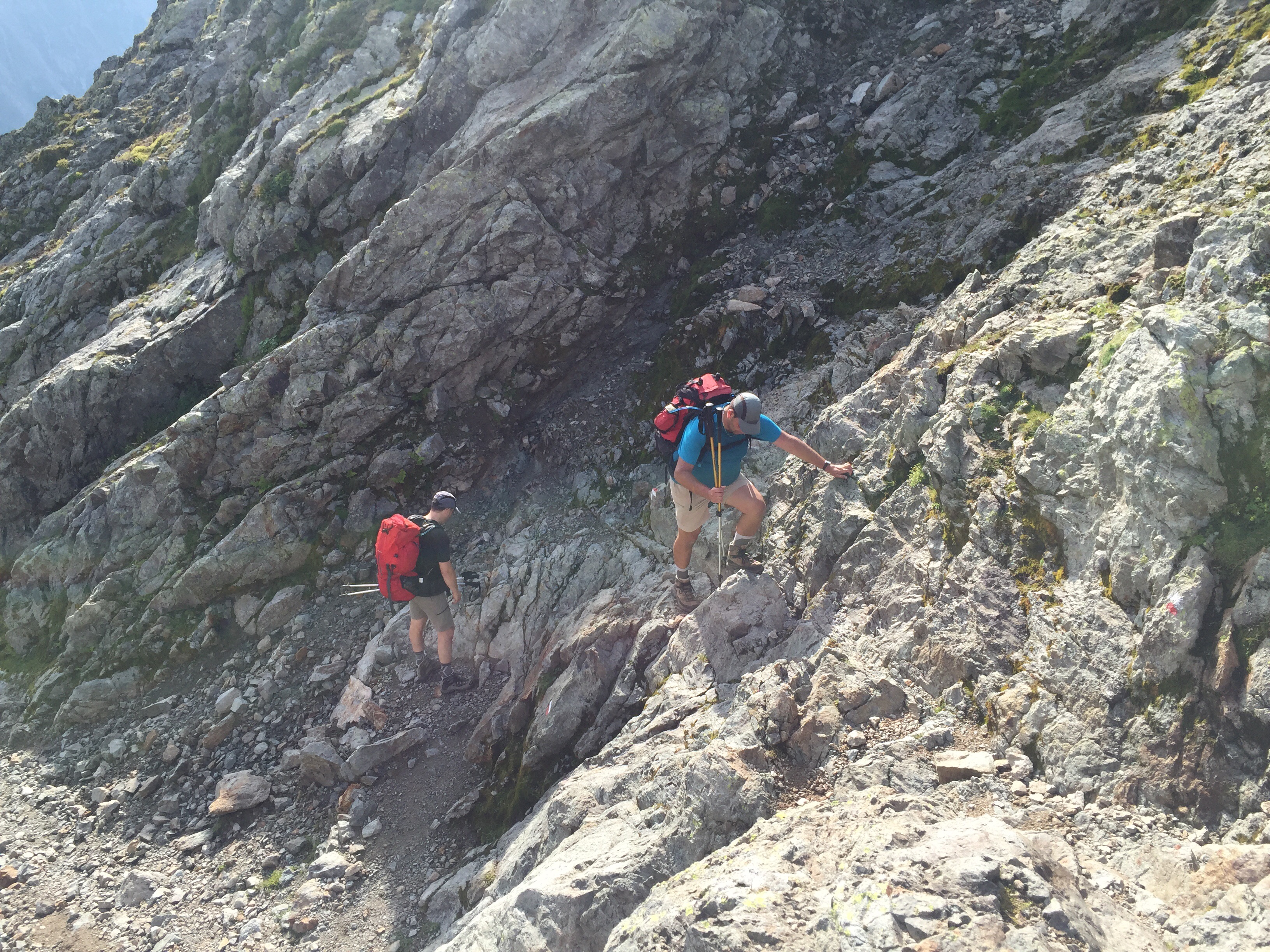C’est une ascension assez simple pour commencer mais qui s’est fortement compliqué lorsque nous sommes arrivés au pied d’un mur de schiste (Pierre de type ardoise très friable, glissante et tranchante).