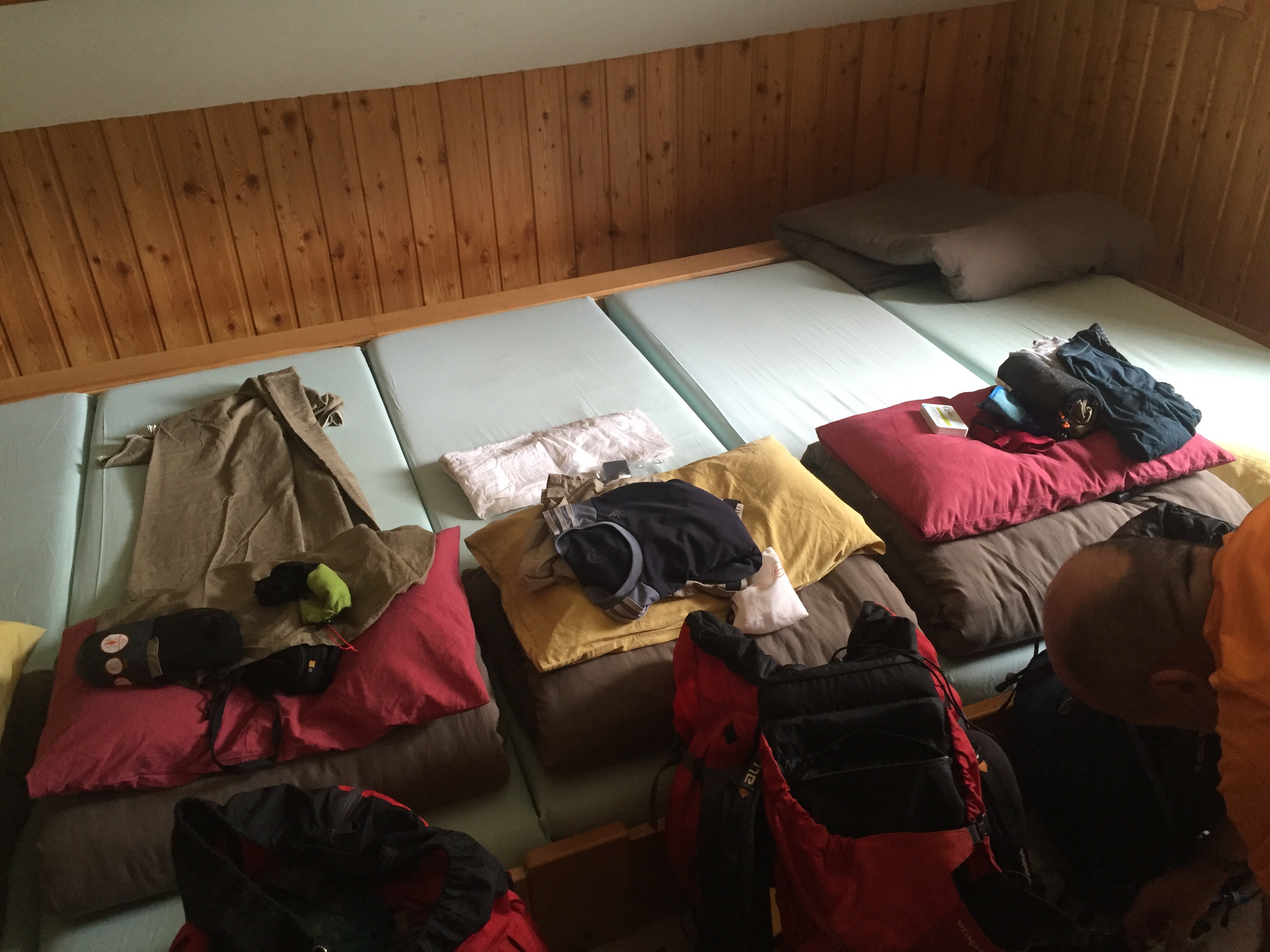 Après nous être installés dans une chambrée de 12 places, nous avons pris notre SPRITE MENTHE (boisson officielle) puis assistés à un superbe orage en compagnie d’un sympathique couple de randonneurs belges.